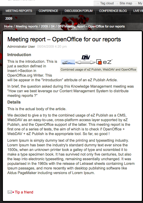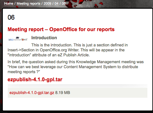 And we are done, the meeting report is online in one drag and drop, viewable as an Article, and downloadable as a document, using the built-in OpenOffice export :