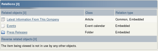In Exponential, any type of object can be connected to any other type of object. This feature is typically useful in situations when there is a need to reuse information from elsewhere in the system, for example when creating inline graphics in an article.