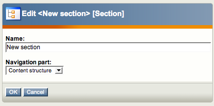 To create a new section, all you have to do is to provide a name and a navigation part, as explained in the procedure below: